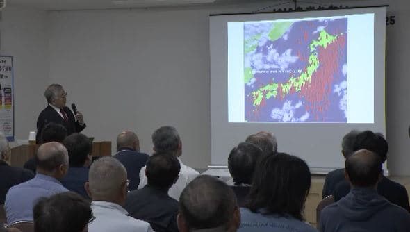 つどいでは信州大学理学部の原山智特任教授による防災に関する講演も行われ、正午には犠牲者へ黙とうを捧げました。