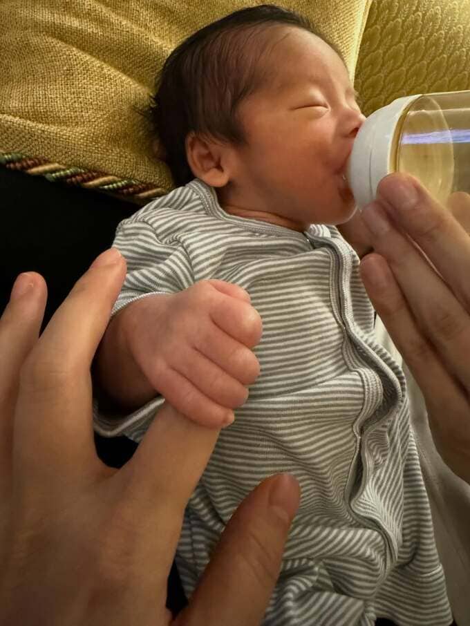 続けて「新生児は生まれた体重から一旦小さくなりそこからまた毎日大きくなるそうですが、少しずつ重くなるのが本当に嬉しい」「2人それぞれのかわいさと個性、二卵性双子男子楽しいです!」と、記しました。