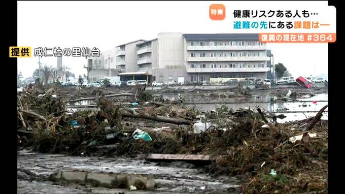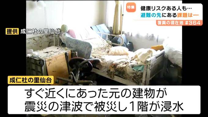 実はこの施設、仙台東部道路を挟んですぐ近くにあった元の建物が震災の津波で被災し1階が浸水しました。海岸から3キロ離れていましたが、職員のとっさの判断で1階にいた50人近い入居者を2階に避難させたことで津波の犠牲者は1人も出ませんでした。しかし、被災した施設で入居者の健康を維持していくのは想像以上に大変だったと言います。