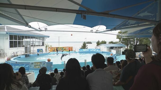 3連休最終日、のとじま水族館にはハロウィーン仕様のイルカやアシカショーを目当てに朝から大勢の家族連れが詰めかけました。