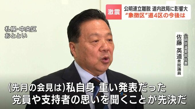 「当日の朝(佐藤氏から)連絡をいただいて「北海道の自公の友情は変わりませんから」というような事をおっしゃったので、それはありがたい事なんですが、どう受け取っていいのかなというふうに正直戸惑ったというのもあります」
