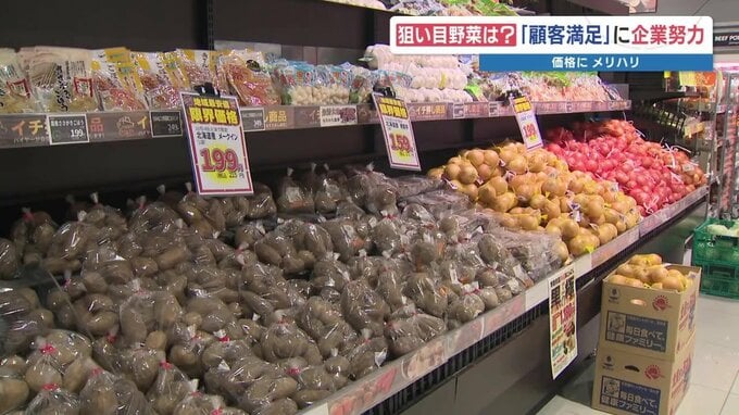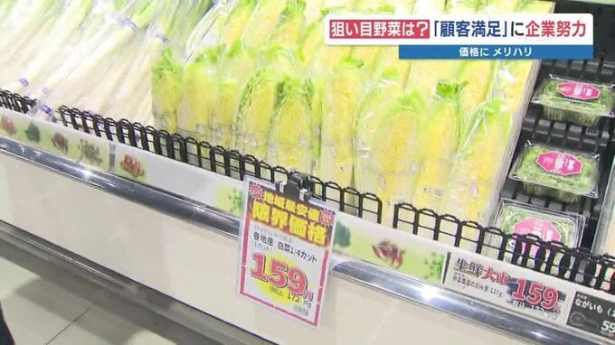 野菜が高い傾向の中、安い商品も準備し、価格にメリハリをつけることで顧客満足につなげようとしています。