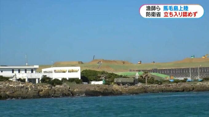(記者)「西之表市の漁港をでてから約30分、馬毛島に到着しました。自衛隊の車両や、工事関係者の車両が数多く見えます」