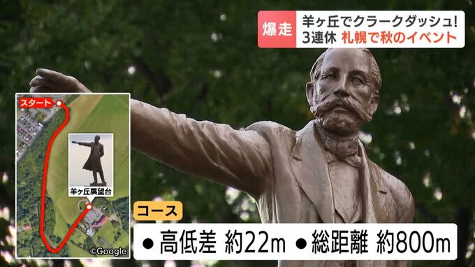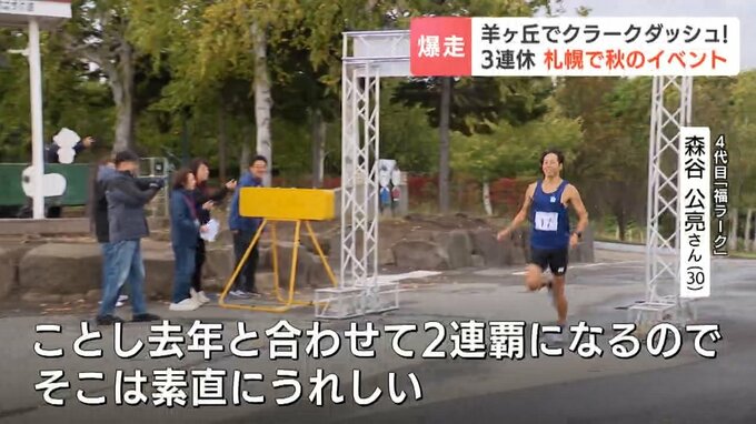 札幌・羊ヶ丘展望台の入場ゲートからクラーク像まで800メートルのコースをトップの称号「福ラーク」を目指し、27人のランナーが駆け抜けました。