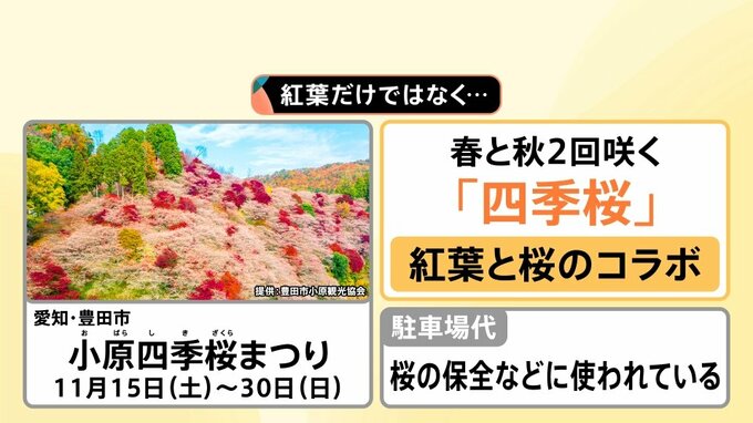 愛知・豊田市で11月15~30日に「小原四季桜まつり」が開かれます。紅葉だけではなく、春と秋に2回咲く「四季桜」と「紅葉」が同じ時期に楽しめるという珍しい観光スポットです。