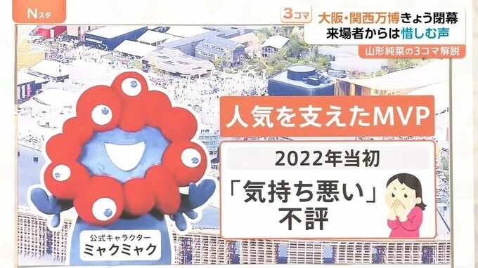 大阪・関西万博が13日閉幕します。徹夜で会場を待つ人など、最終日まで多くの人が会場に訪れていました。そんな万博を支えた公式キャラクター「ミャクミャク」。当初の不評から一転、人気となった秘訣とは。