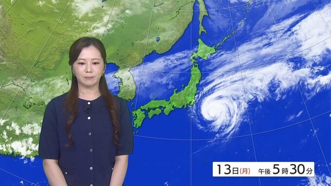 あす(14日)にかけて台風23号はさらに東へ離れていきます。かわって大陸から張り出してくる高気圧が北海道を覆う予想です。また、西日本も高気圧の圏内となるでしょう。ただ、朝鮮半島付近の前線が西日本から東日本まで伸びてくる予想で、午後になると東海や関東の南の海上まで下りてくる予想です。