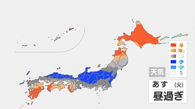 東日本では今日より低いところが多く、名古屋では25℃の予想です。一方、西日本では、真夏日のところもありそうです。