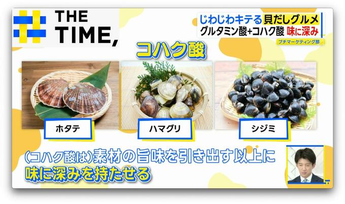 「ここ数年は貝だしのみにスポットを当てた店が増えてきた。貝だしは、グルタミン酸の他に【コハク酸】が入っていることで注目を集めるようになった。コハク酸は素材の旨味を引き出す以上に【味に深みを持たせる】」
