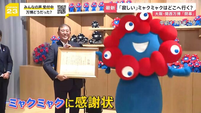 13日に行われた、ミャクミャクへの感謝状授与式では…