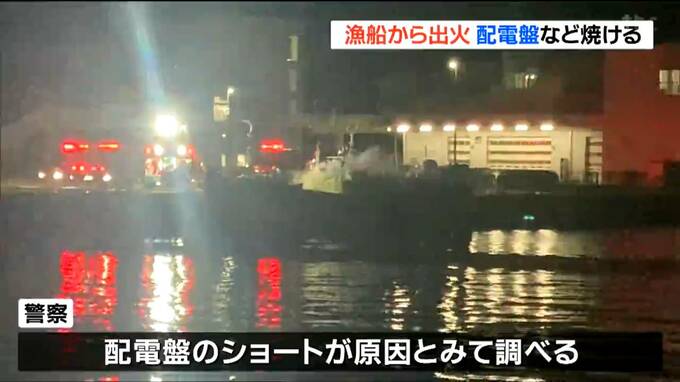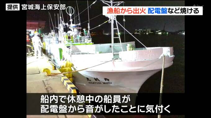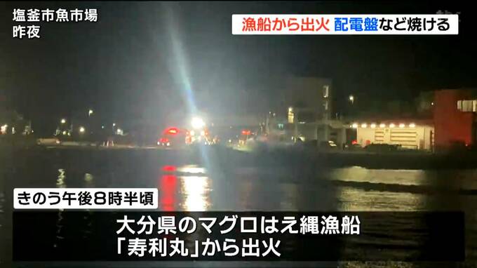 13日夜、宮城県の塩釜市魚市場で停泊中の漁船から火が出て配電盤などが焼けました。けがをした人はいませんでした。