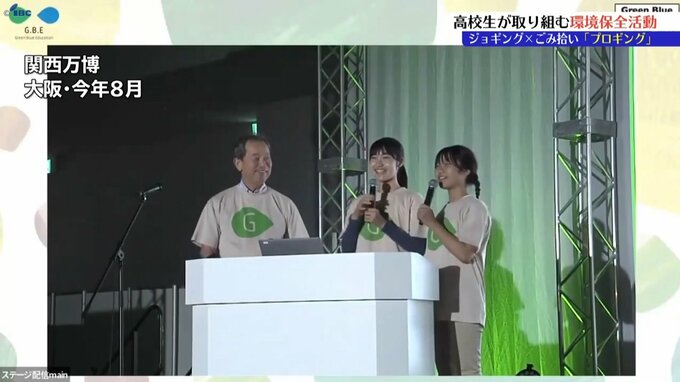 8月に大阪・関西万博で行われた「グリーンブルーエデュケーションフォーラムコンクール」で、澤﨑さんとほのかさんはザリガニ釣り大会の活動報告を行いました。