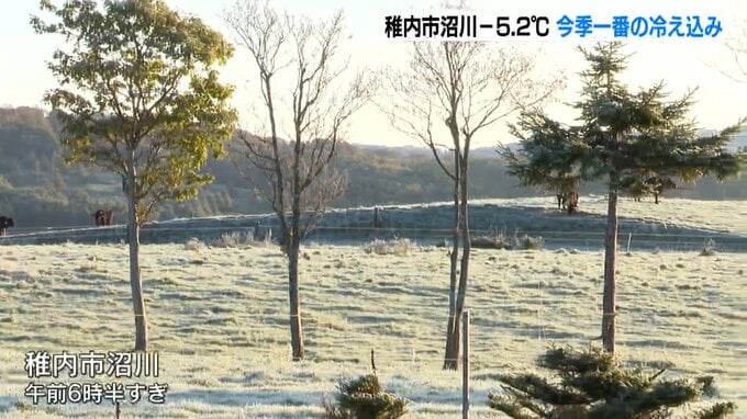 14日朝の北海道は、北部など半数以上の地点で最低気温を更新し、この秋一番の寒さになりました。早朝の牧草地に霜が降り、一面に銀世界が広がっています。14日朝、道内の最低気温は稚内市沼川でマイナス5.2℃、オ…