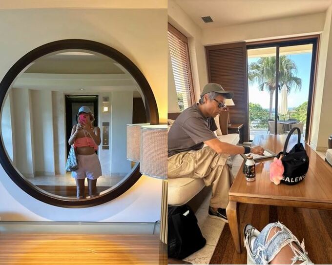 沖縄で合流した2人は、リゾートホテルに滞在して、バカンスを楽しんだようで、窓の向こうに椰子の木がのぞく南国を感じる客室で、くつろぐ様子が紹介されています。