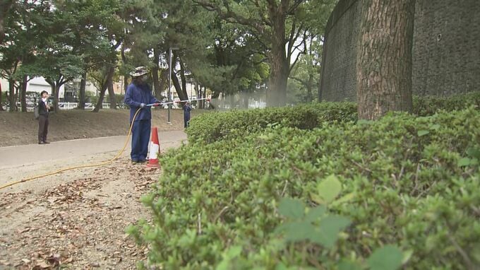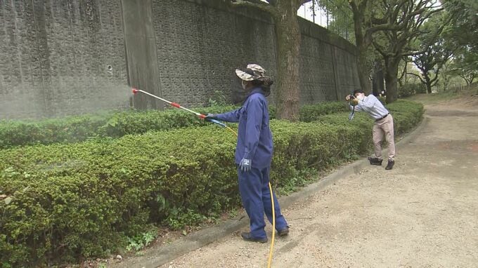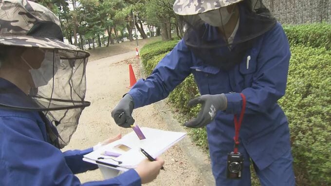 きょうの訓練では、薬剤の代わりに「水」を使い、マスクを着用した市の職員ら約20人が、感染症を媒介する「蚊」を駆除するために、噴霧器を使う手順やシートで薬剤が十分に散布できているかを確認しました。