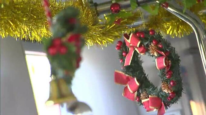 クリスマス電車は12月25日まで、岡山市内を1日12往復する予定です。