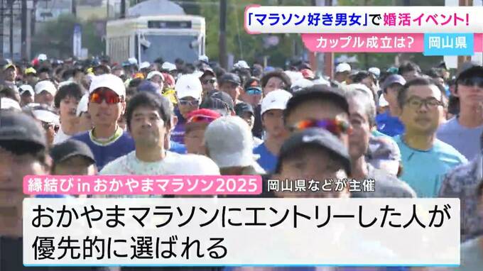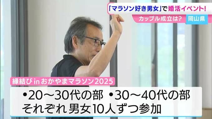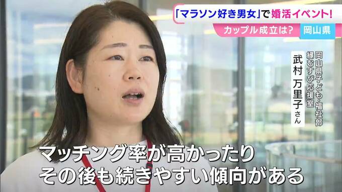 岡山県内で去年1年間に生まれた子どもの数は1万926人で、14年連続で過去最少を更新しました。こうした中、マラソンという共通の趣味を持つ男女なら多くのカップルが誕生するのではと、岡山県などがこの婚活イベントを始めたのです。