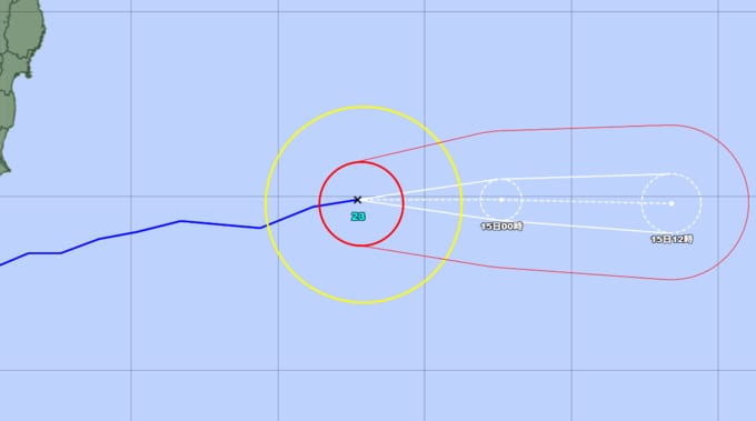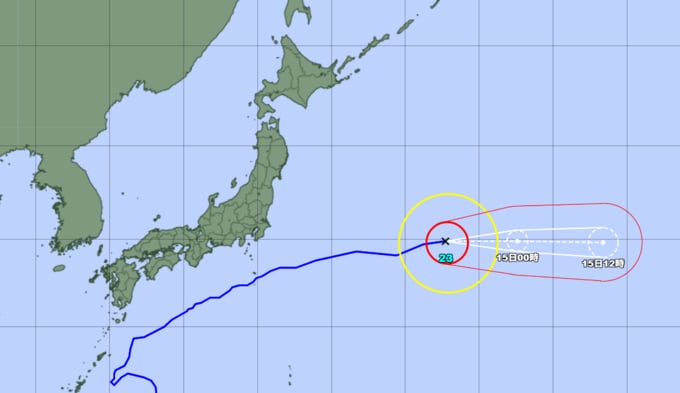 15m/s以上の強風域 南東側 330 km (180 NM)