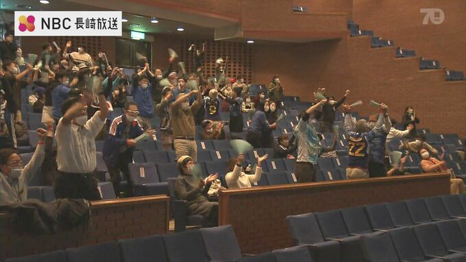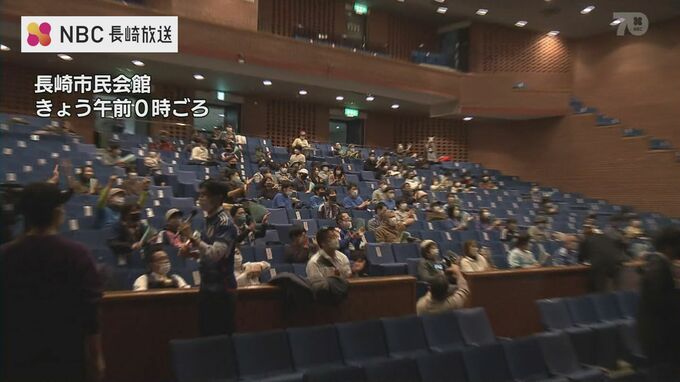 6日午前0時のキックオフに合わせ、長崎市の長崎市民会館には多くの市民が集まりました。