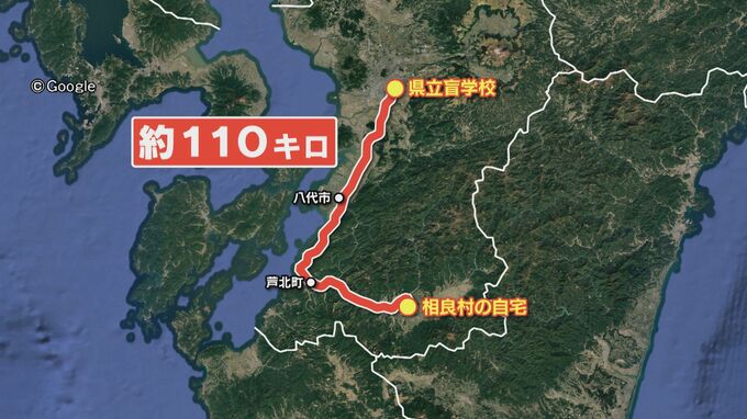 自宅がある相良村から熊本市にある県立盲学校までの110㎞を1日で走る計画です。
