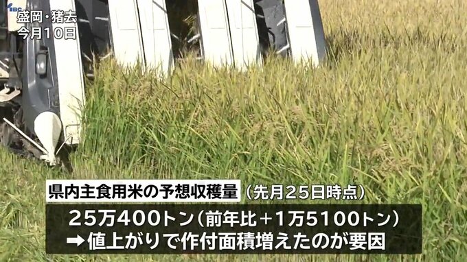 2025年に岩手県内で収穫される主食用のコメの予想収穫量は、2024年を1万5000トンあまり上回る見込みです。