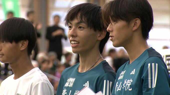 青学の黒田選手は区間賞の表彰で笑顔を見せました。最後はバスの時間が迫り、猛ダッシュ。