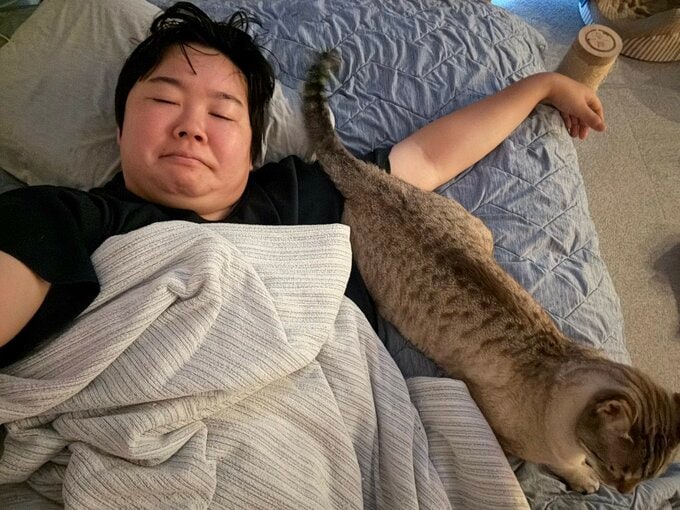 お笑い芸人のやす子さんが、愛猫アビシとの生活について複数の写真を自身のXに投稿しています。