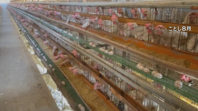ことし7月~8月にかけて、養鶏場の約2000羽が暑さで死んだといいます。これは去年の同じ時期に比べると約4倍の数。暑さは大きく影響し、1日13万5000個ほどの卵を出荷していたのが、夏の期間は12万個台に落ち込んだこともあったそうです。