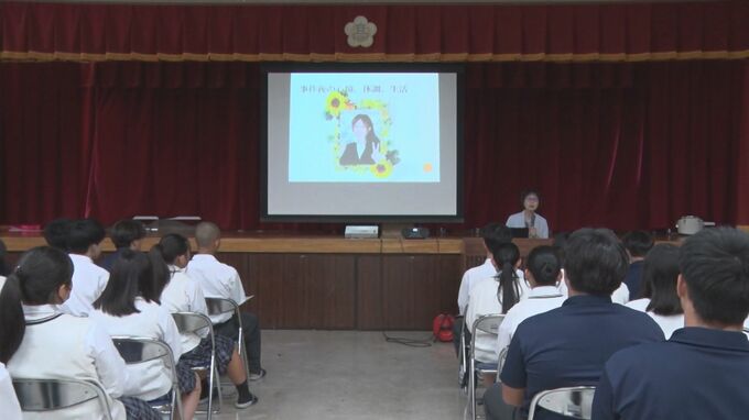 10月8日、江津市にある石見智翠館高校で開かれた「命の大切さを学ぶ教室」。