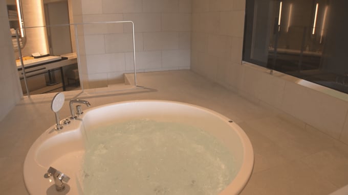 さらに、室内のジェットバスからもスタジアムが一望できバスタイムを楽しみながら観戦することもできる贅沢さです。