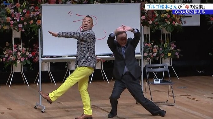体を使った漢字ネタで知られるお笑いコンビTIMのゴルゴ松本さんは、2011年からさまざまな漢字の成り立ちから命について考える、「命の授業」を全国で実施しています。