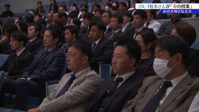 ホワイトボードに漢字を書きながらおよそ1時間にわたり行われたゴルゴさんの熱のこもった授業に、参加したおよそ160人は、真剣な表情で聞き入っていました。