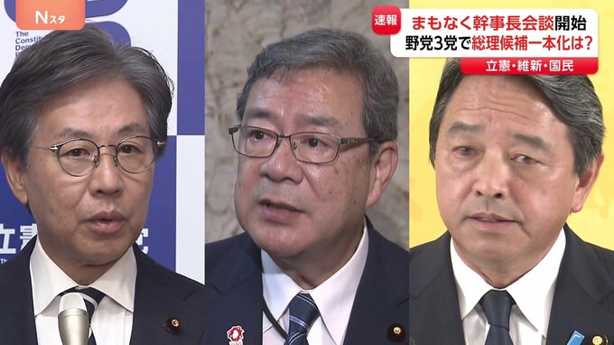 来週予定される総理大臣指名選挙で野党として「総理候補」を一本化することは出来るのでしょうか。その試金石となる幹事長会談がまもなく始まります。国会から中継です。会談を呼びかけた立憲民主党としては今回の…