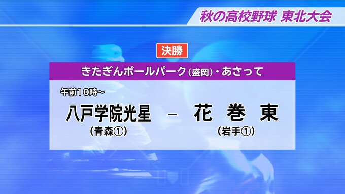 花巻東と青森第1代表・八戸学院光星の決勝戦は16日10時からきたぎんボールパークで行われます。