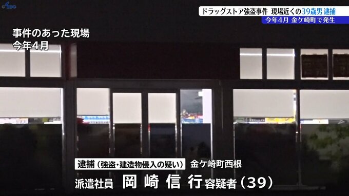 4月に岩手県金ケ崎町のドラックストアで発生した強盗事件について、警察は14日、現場近くに住む39歳の男を逮捕しました。