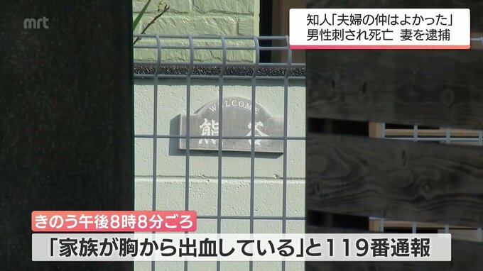 婦に一体何があったのでしょうか。13日夜、宮崎市清武町の住宅で、この家に住む62歳の男性が胸を刃物のようなもので刺され死亡しました。警察は男性の妻を逮捕し、殺人事件として捜査しています。