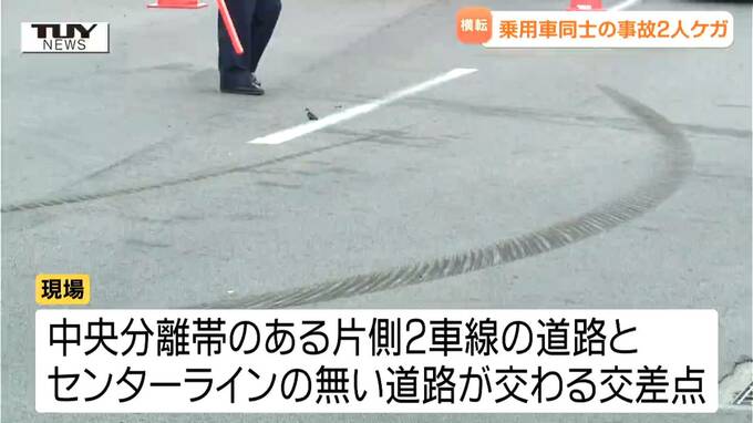 車2台が衝突 1台は横転、もう1台は歩道に乗り上げる 高齢の男女2人がケガ(山形市)