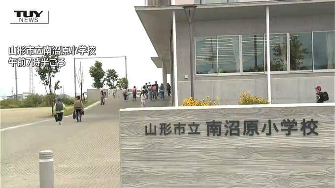 けさ、山形市の南沼原小学校では保護者が児童を送り届ける姿がみられました。