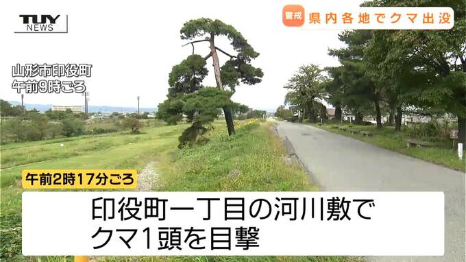きょうは未明に、山形市の馬見ヶ崎川沿いでクマ一頭が目撃されたほか鶴岡市などでも目撃情報があり、警察などが注意を呼び掛けています。