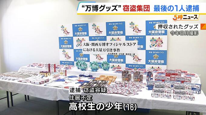 万博会場でグッズを万引きか。窃盗グループの最後の1人、16歳の少年を逮捕です。 窃盗の疑いで新たに逮捕されたのは、住居不定の高校生の少年(16)です。 警察によりますと少年は今年6月、大阪・関西万博…