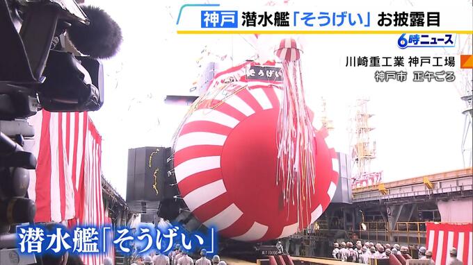 海上自衛隊に引き渡される潜水艦「そうげい」がお披露目です。 10月14日、神戸市の川崎重工業でお披露目された潜水艦「そうげい」。「鮮やかな蒼いクジラ」を意味する造語から名づけられました。 全長84m…