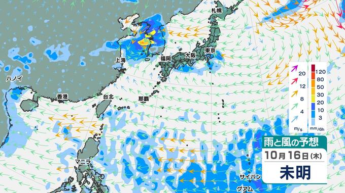 シミュレーションでは、台風23号の「反時計回りの渦」が、伊豆諸島から日本の東の海上を進んでいきます。また、これとは別の「反時計回りの渦」が17日(金)頃からフィリピンの東の海上に現れ、「渦」はだんだんとハッキリとしてきて、西に向かいそうです。