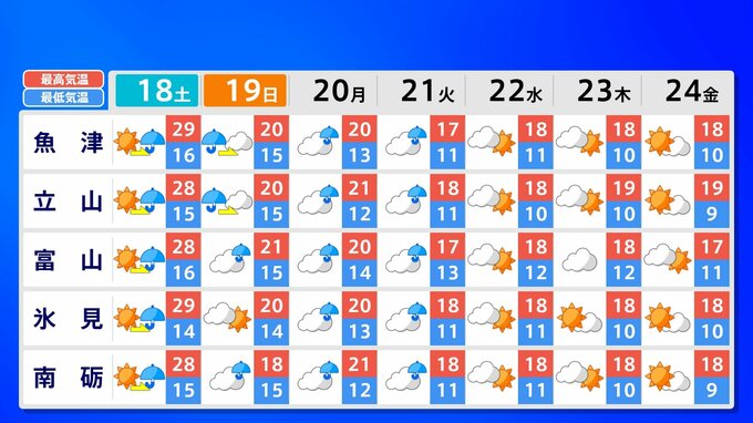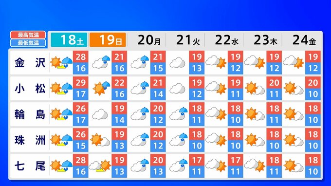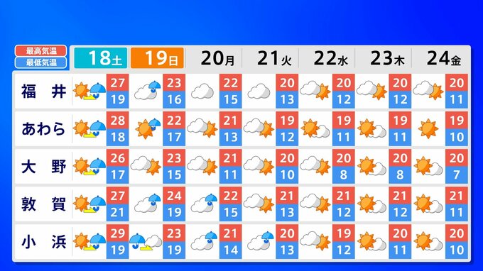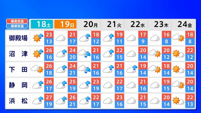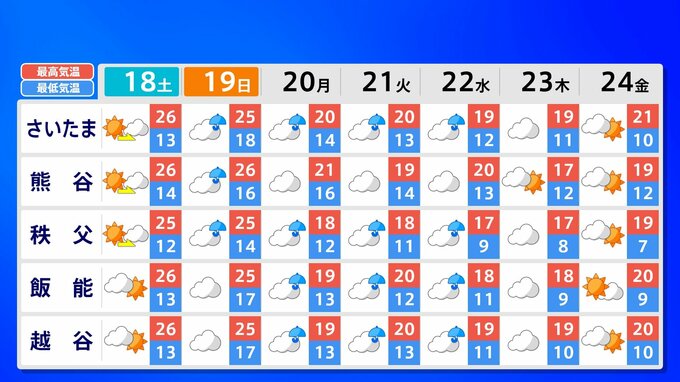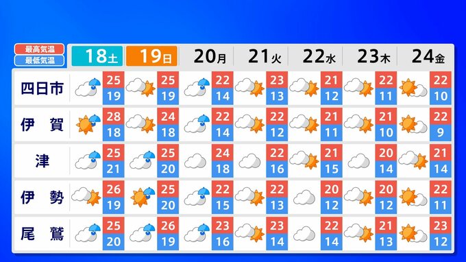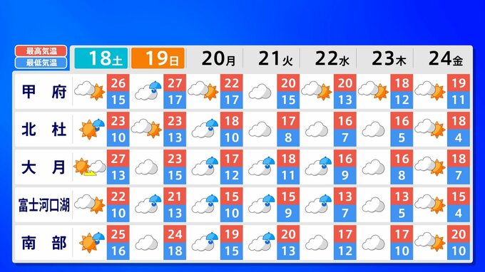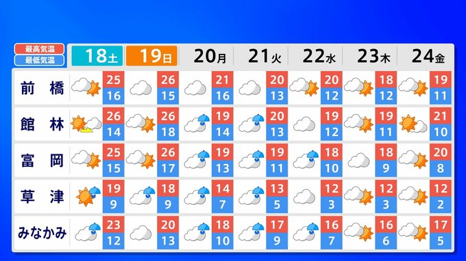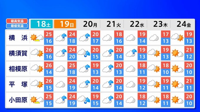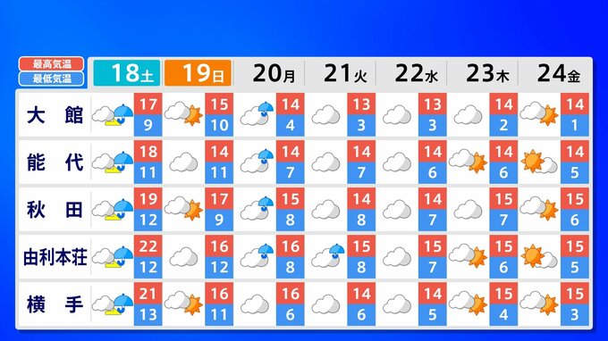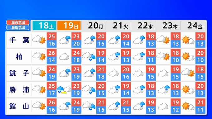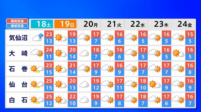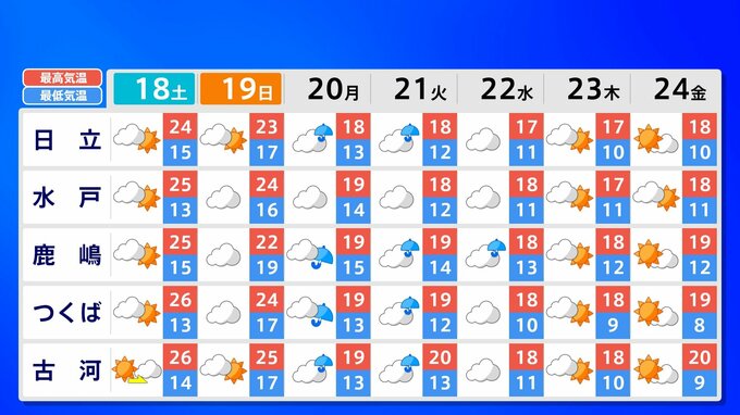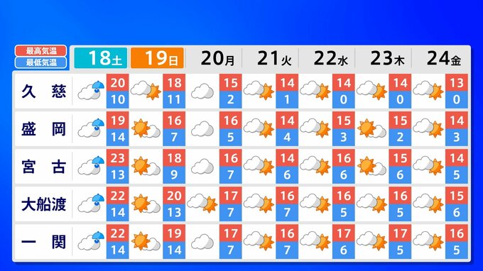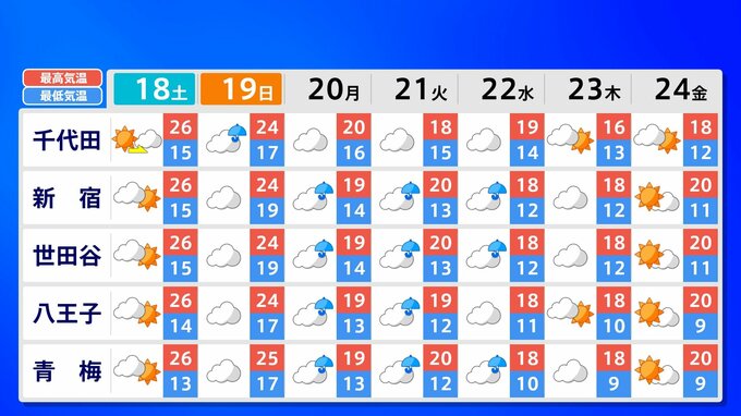 また雨を境に、北から涼しい空気が入り気温が下がる見込みです。東京の23日(木)の予想最高気温は〈16℃(11月中旬並み)〉となるなど、長袖や上着、北日本ではコートなどを準備しておいたほうがいいでしょう。