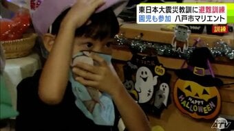 東日本大震災で津波により駐車場が冠水した青森県八戸市のマリエントで、避難訓練が行われました。職員に加え、近隣の保育園も参加し、万が一の対応を確かめました。