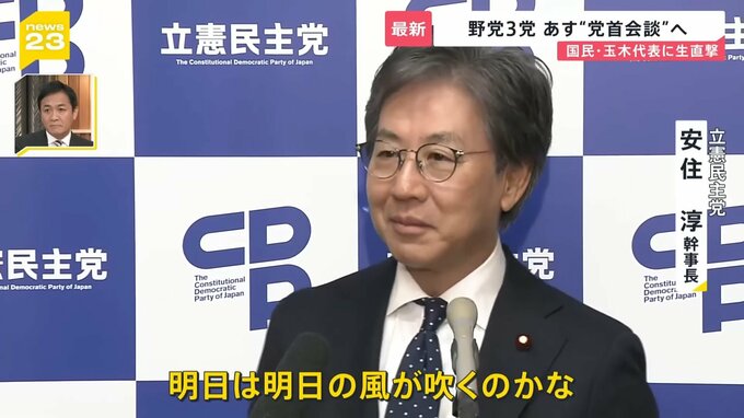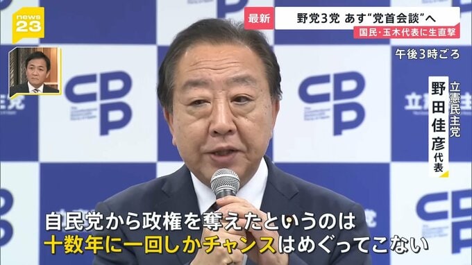 その立憲と維新・国民民主の3党の幹事長が、14日夕方に会談し、総理指名選挙などをめぐって、15日、「党首会談」を行うことで一致しました。