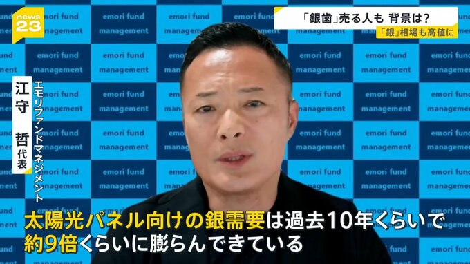 「太陽光パネル向けの銀需要は、過去10年くらいで約9倍くらいに膨らんできている。需要と供給のバランスが逼迫して、(銀の)在庫が少なくなってきている」