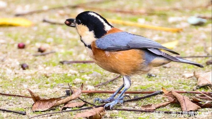 少し緑のある場所で、頭上から鳴き声が聞こえ、枝の上で木の実をくわえてこちらを見つめる、オレンジ色のお腹と黒い頭の小鳥を見かけたら、それはきっとヤマガラです。
