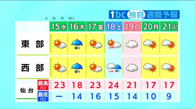 その後の天気を見ると、17日(金)は晴れますが、18日(土)午後は西部を中心に雨となります。