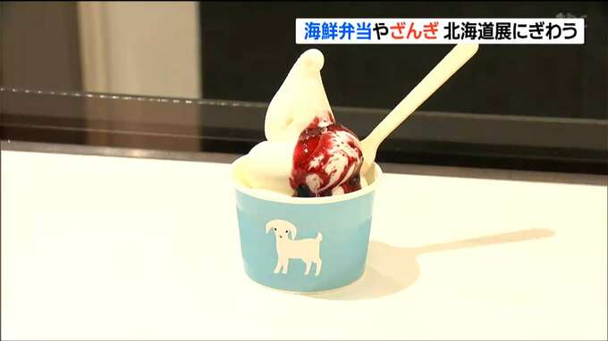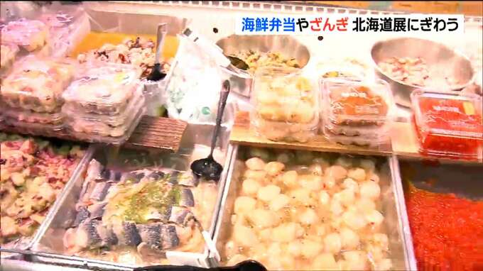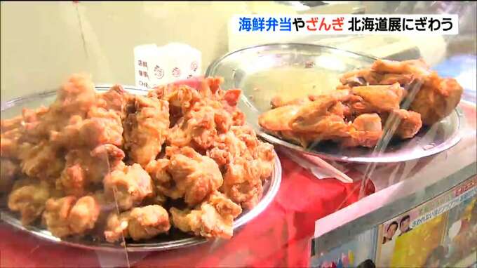 カニやイクラなどを豪快に盛り付けた海鮮弁当に、ショウガが効いた北海道名物の唐揚げ「ざんぎ」。仙台市青葉区の藤崎で始まった物産展では、北海道のグルメを提供する約60ブースが並んでいます。