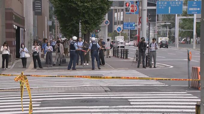 現場は、名古屋駅から南側にある大学や企業に勤める人が歩く道で、普段から大勢の人が行き交う場所です。